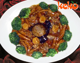 蚝油芥兰牛肉:'1.牛肉切片后加酱油、玉米粉、芡粉、油10克、清水50克拌匀,腌渍1.5小时,备用;2.芥兰切去头、尾、老茎、残叶部分,洗净备用;3.蒜头切碎;姜切末;...