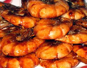 啤酒烧大虾:'1.大虾去沙袋、沙线,剪去虾枪、须和腿,用水冲净。2.勺中加植物油烧热,放入葱、姜、料酒,烹出香味,加入大虾煎两面,并压出虾脑,再加入啤酒、高汤...