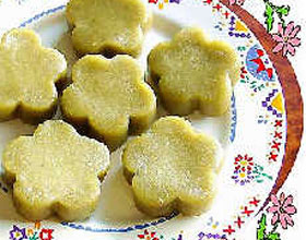 绿豆糕:'1.将绿豆粉,糯米粉,白糖,素油擦拌后用密眼筛筛过,即成为糕的底层用粉。2.以木制的印板,下面先铺一层底粉,中间夹进豆沙或枣泥,上面再铺一层糕粉...