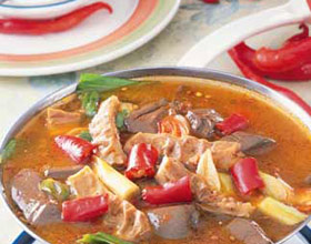 五更肠旺:'1.猪肠清理干净,用盐搓清粘液,再用清水冲净;2.鸭血、酸菜切成块状;3.辣椒、青蒜切段备用;4.猪肠先煮一次,再切成2厘米长的段,与鸭血、酸菜同置...    详细介绍