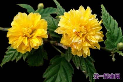 棣棠花为落叶灌木,叶子略呈卵形,花黄色,无香味,果实黑褐色,花语是高贵。棣棠花还有两个变种,一种是重瓣棣棠花,一种是白棣棠花。前者花瓣重重长得像个小球,在古代被认为是最有观赏价值的品种。白棣棠花就比较罕见了,很受日本人的推崇。除供观赏外,入药有消肿、止痛、止咳、助消化等作用。