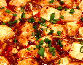 麻婆豆腐:'1.豆腐切成2厘米见方的小块,用热水氽过,备用。2.炒锅中倒入油,猪肉(绞碎)用辣豆瓣酱、姜末炒酥,倒入高汤与豆腐、酱油、味精、酒以小火同煮。3....    详细介绍