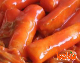 韩国辣炒年糕:'1.白菜、甜不辣、洋葱、胡萝卜切丝;2.葱切段;3.洋葱、胡萝卜爆香,倒入适量水;4.甜不辣、白菜倒入,煮至水开,放入适量辣椒酱;5.煮至水开,放入年...