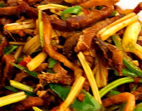 主料: 牛肉(肥瘦}300克 芹菜100克