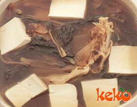 4.咸鱼头斩件与白菜干切段放入煲内,加水4-5碗,煲3-4个小时,即可饮用。