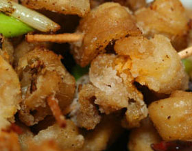 脆炸大肠:'1.将猪大肠用盐或明矾擦洗干净,除去粘液污物;2.将大肠光滑面翻在外面,先用开水焯过,再洗干净;3.然后用清水煮至软烂,捞出,控去水分;4.炒锅用旺...    详细介绍