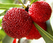 Arbutus杨梅是杨梅科杨梅属常绿乔木的果实,因其形似水杨子、味道似梅子,因而取名杨梅。杨梅是我国特产水果之一,素有“初疑一颗值千金”之美誉,在江浙一带,又有“杨梅赛荔枝”之说。杨梅果实色泽鲜艳,汁液多,甜酸适口,营养价值高。