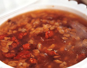 归脾麦片粥:'1.党参、黄芪、当归、枣仁、甘草、丹参、桂枝置清水内浸1小时;2.捞出全部中药,加水1000毫升,煎汁去渣;3.麦片、桂圆肉、枣,加入药汁,共煮成粥。...    详细介绍