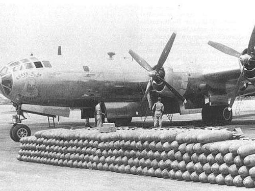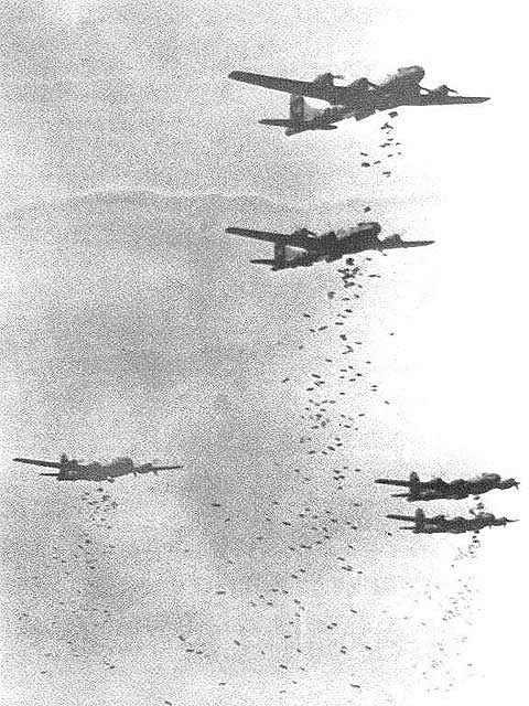 1944年11月一1945年8月,美国空军对日本98座城市实行战略轰炸,共出动B一29轰炸机3.3万架次,投弹16万吨,炸死23万人,炸伤35万人,全日本24%的房屋变成废墟,1600架飞机被摧毁,1650艘船舰被击沉击伤。东京是受常规炸弹破坏最严重的城市,也是世界上受常规轰炸死亡最多的城市。仅1945年的三次轰炸就死亡14万人,焚毁全城50%以上的房屋,使l00多万人无家可归。
