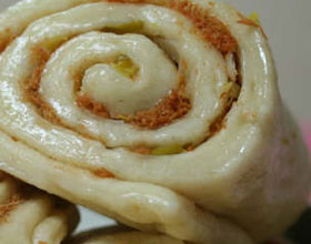 鸡丝花卷:'1.将面粉、干酵母粉、泡打粉、白糖放盛器内混合均匀,加水250毫升搅拌成块,用手揉搓成团,放案板反复揉搓,直至面团光滑,备用;2.将鸡肉洗净蒸熟后...    详细介绍