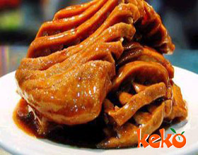 脆炸大肠:'1.将猪大肠用盐或明矾擦洗干净,除去粘液污物;2.将大肠光滑面翻在外面,先用开水焯过,再洗干净;3.然后用清水煮至软烂,捞出,控去水分;4.炒锅用旺...    详细介绍