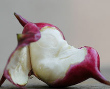 菱角是我国著名特产之一,距今已有3000多年的栽培历史了。菱角有青色、红色和紫色,皮脆肉美,算是佳果,亦可做为粮食之用。一般都以蒸煮后食之,或晒干后剁成细粒,熬粥食之亦可。