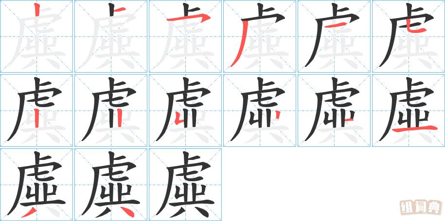 第十一笔:横 第十二笔:撇 第十三笔:点